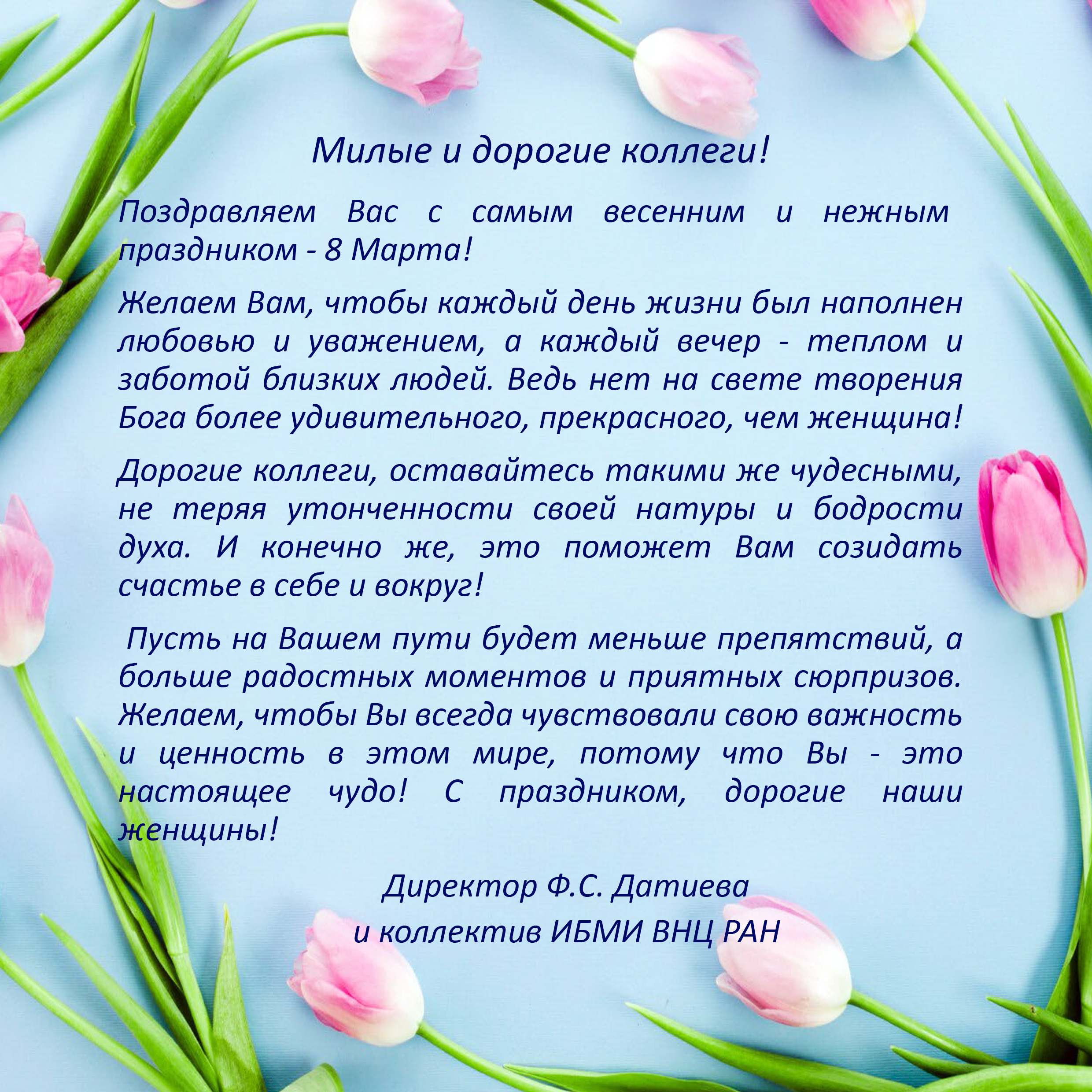 Пусть увлеченность своим делом и неиссякаемая творческая энергия поможет преодолеть все трудности на этом тернистом, но благородном поприще во славу Отечественной науки и процветания России!