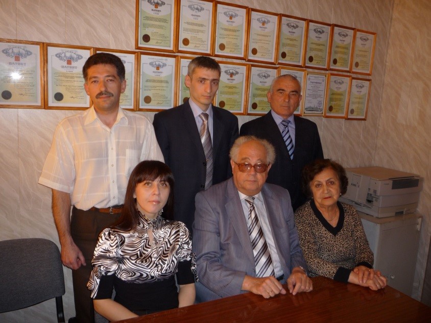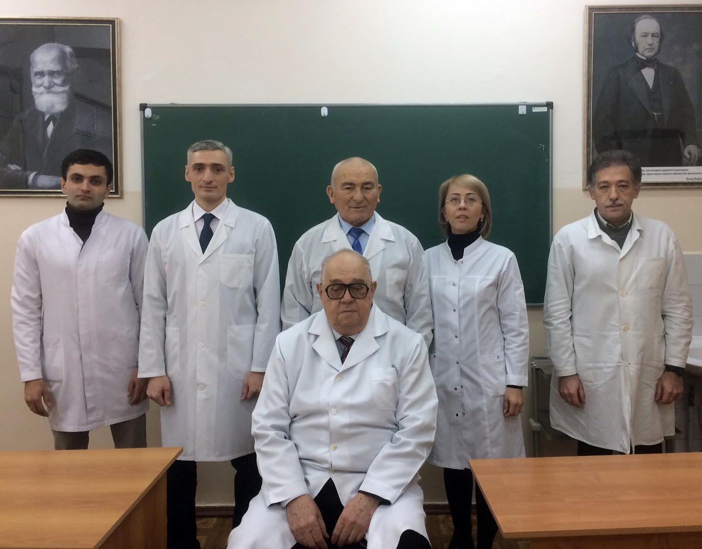 ст. лаборант Г.М. Агаджанян; 2 ряд: к.м.н. О.Т. Кабисов,